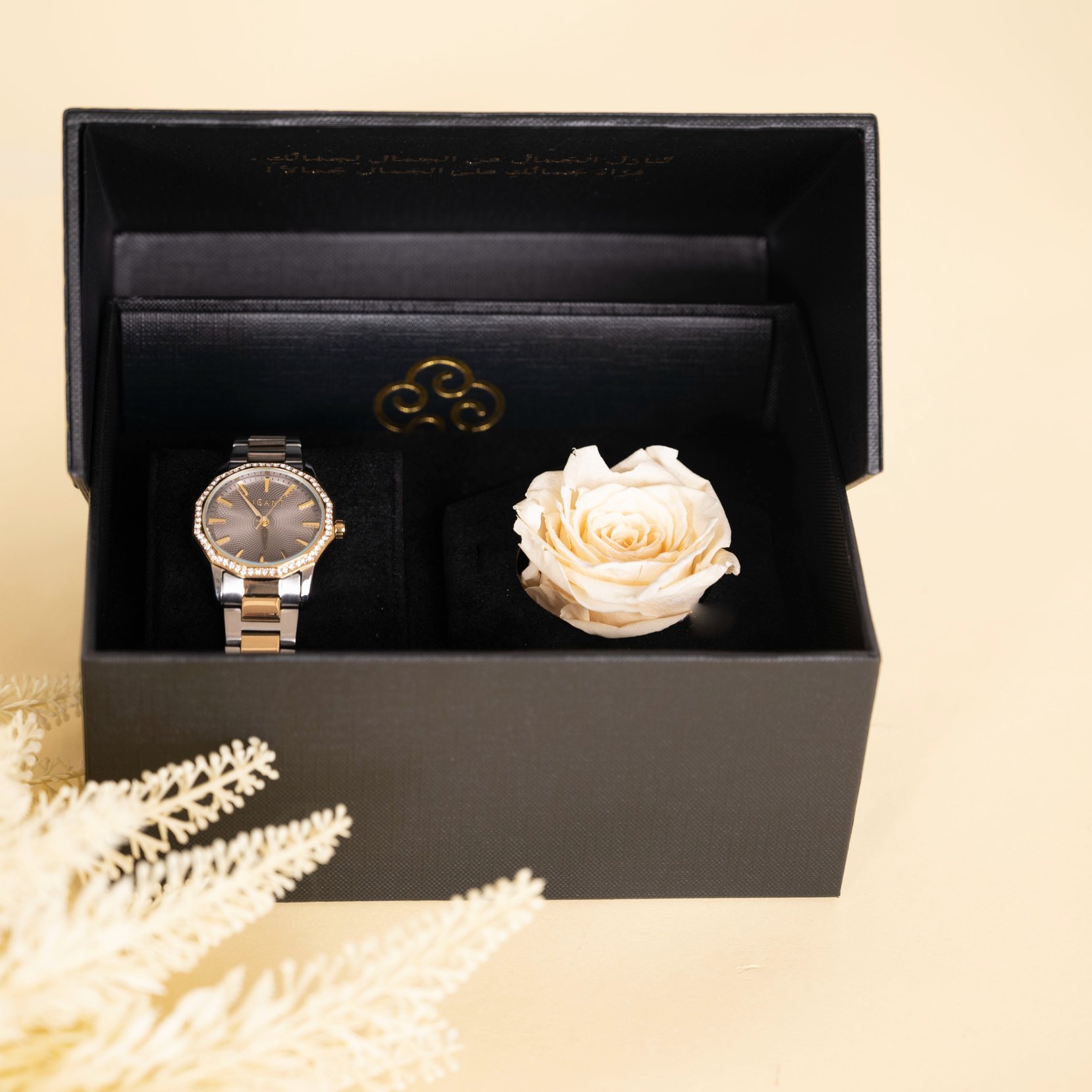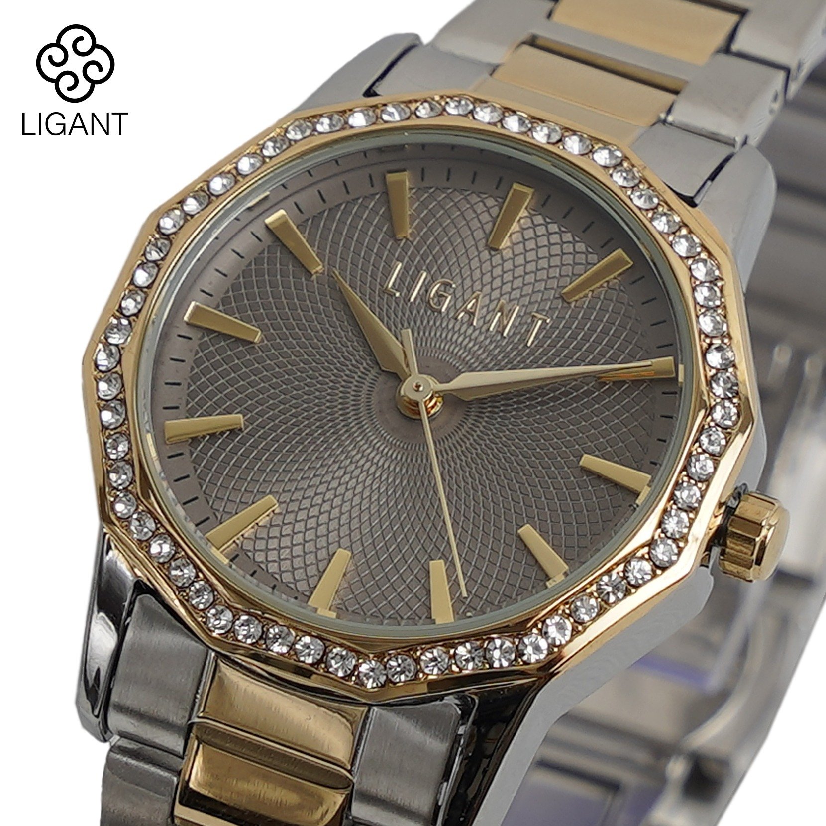 تتميز الساعة بسير من الستانلس ستيل باللون الفضي مع الذهبي وميناء باللون الرمادي مع النقوش الفاخرة، ويكمن الجمال في ساعة نسائية من ماركة ليقنت بتصميم كلاسيك فاخر، اختيارك للساعة يعني اختيارك للجمال والسطوع لأن الفخامة تليق بك وحدك.
