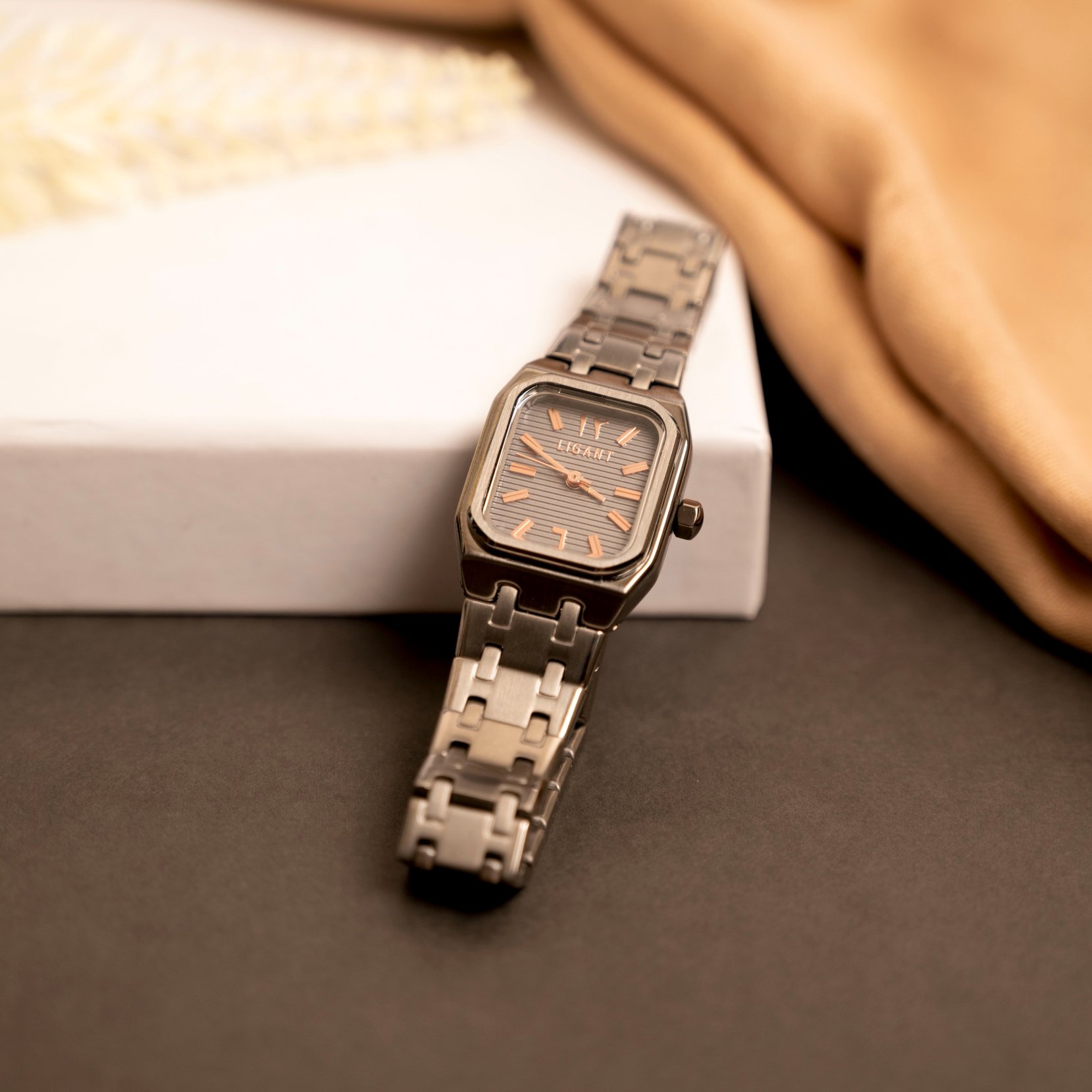ساعة نسائية من ماركة ليقنت بتصميم مميز وسير من الاستيل باللون الفضي وميناء أسود اللون لتجعلك تتميز بالإطلالة والرقي، وتجعلك مميز في جميع المناسبات.