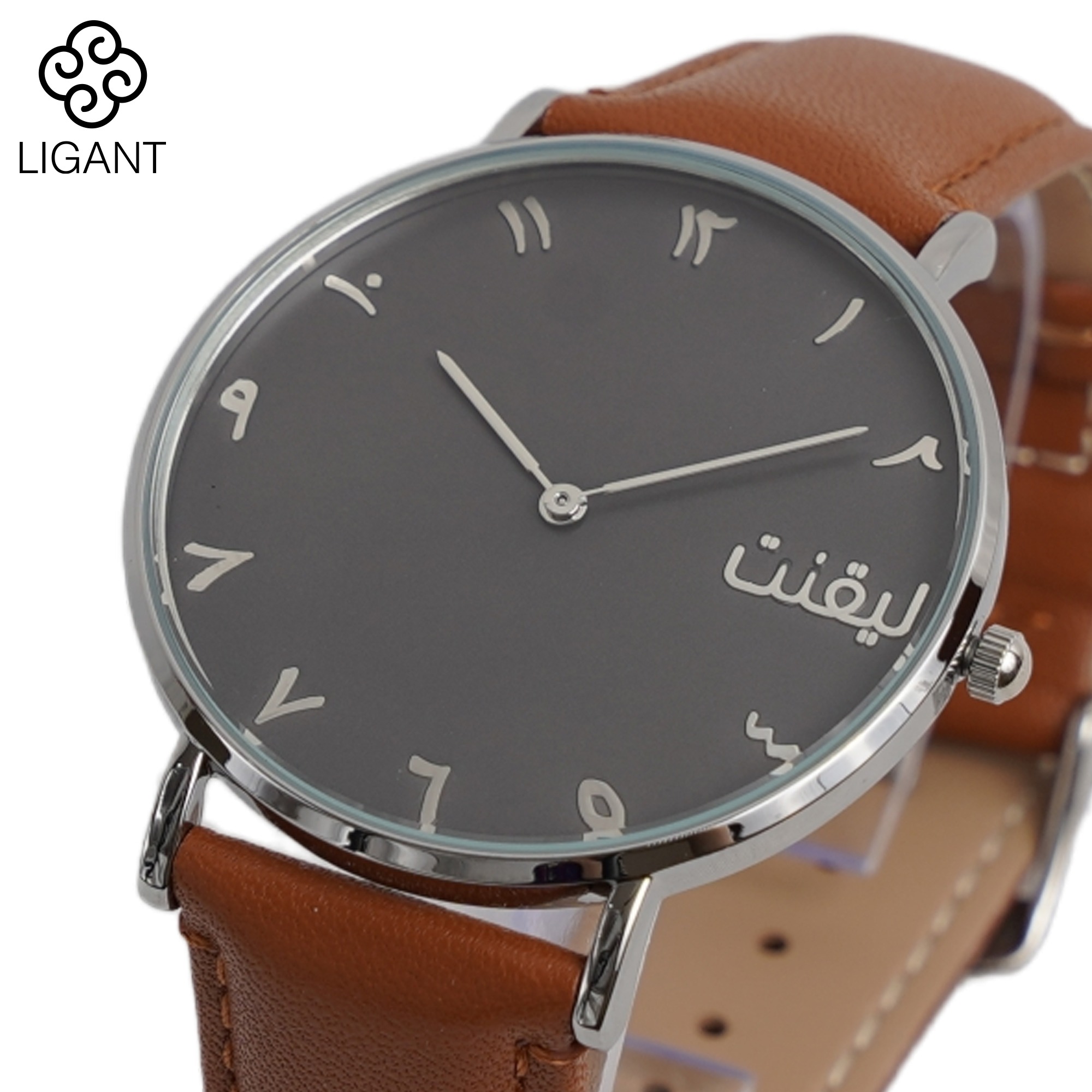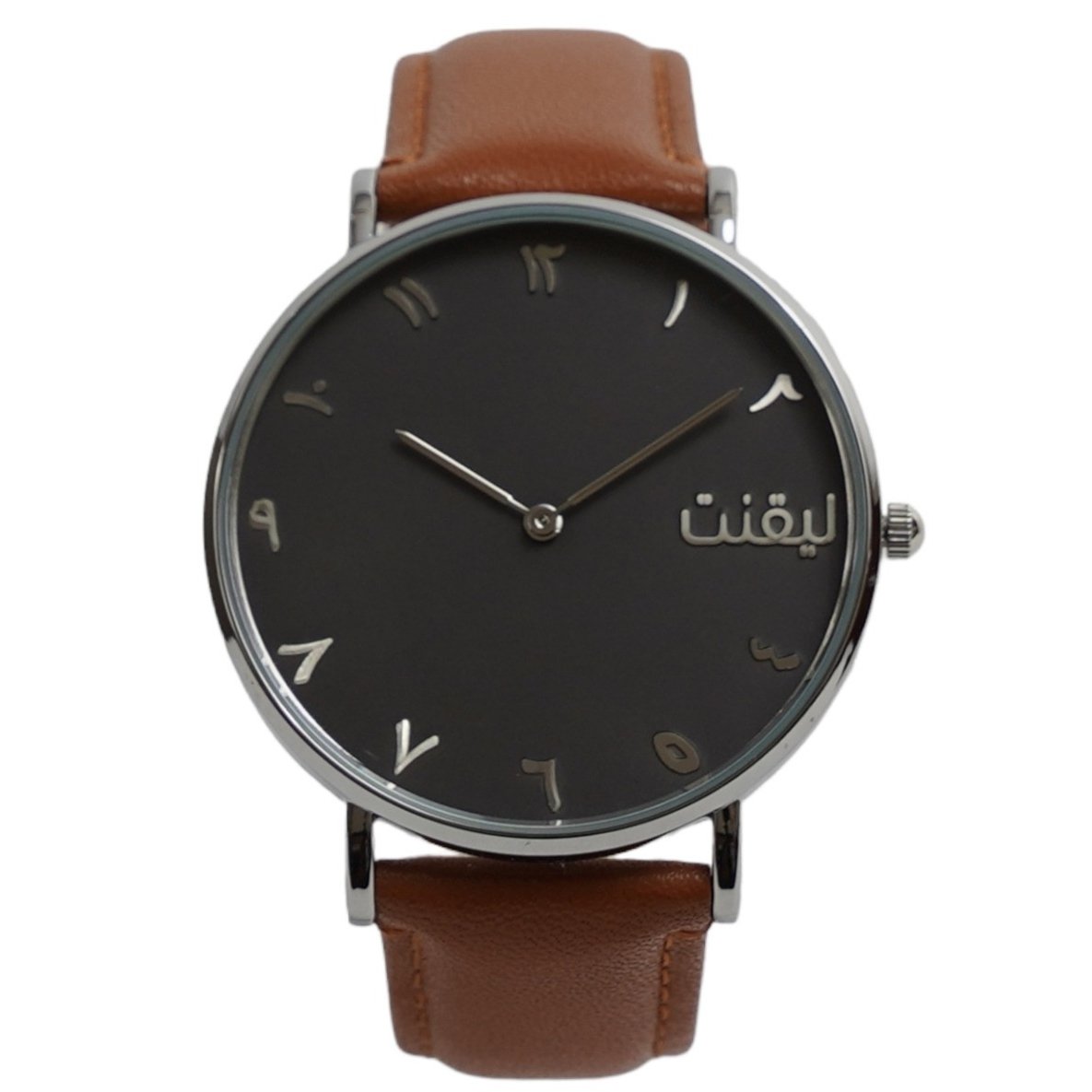 ساعه رجاليه من ماركه ليقنت بتصميم تقليدي عملي ، ساعة من الجلد باللون البني ، تتميز الساعه بالميناء الواسع باللون الرمادي و الفضي بطابع عصري وملفت مع اضافة الارقام العربية والشعار العربي لتجعلك تحس بالانتماء ، ساعه أنيقه لإطلاله كل يوم ، هذه الساعة تناسب إطلالتك الرسميه مع ثوب ليوم عمل و مع إطلالتك المسائيه الكاجول ، إضافه الساعه الى مجموعتك إضافه مميزه لإطلاله كل يوم .