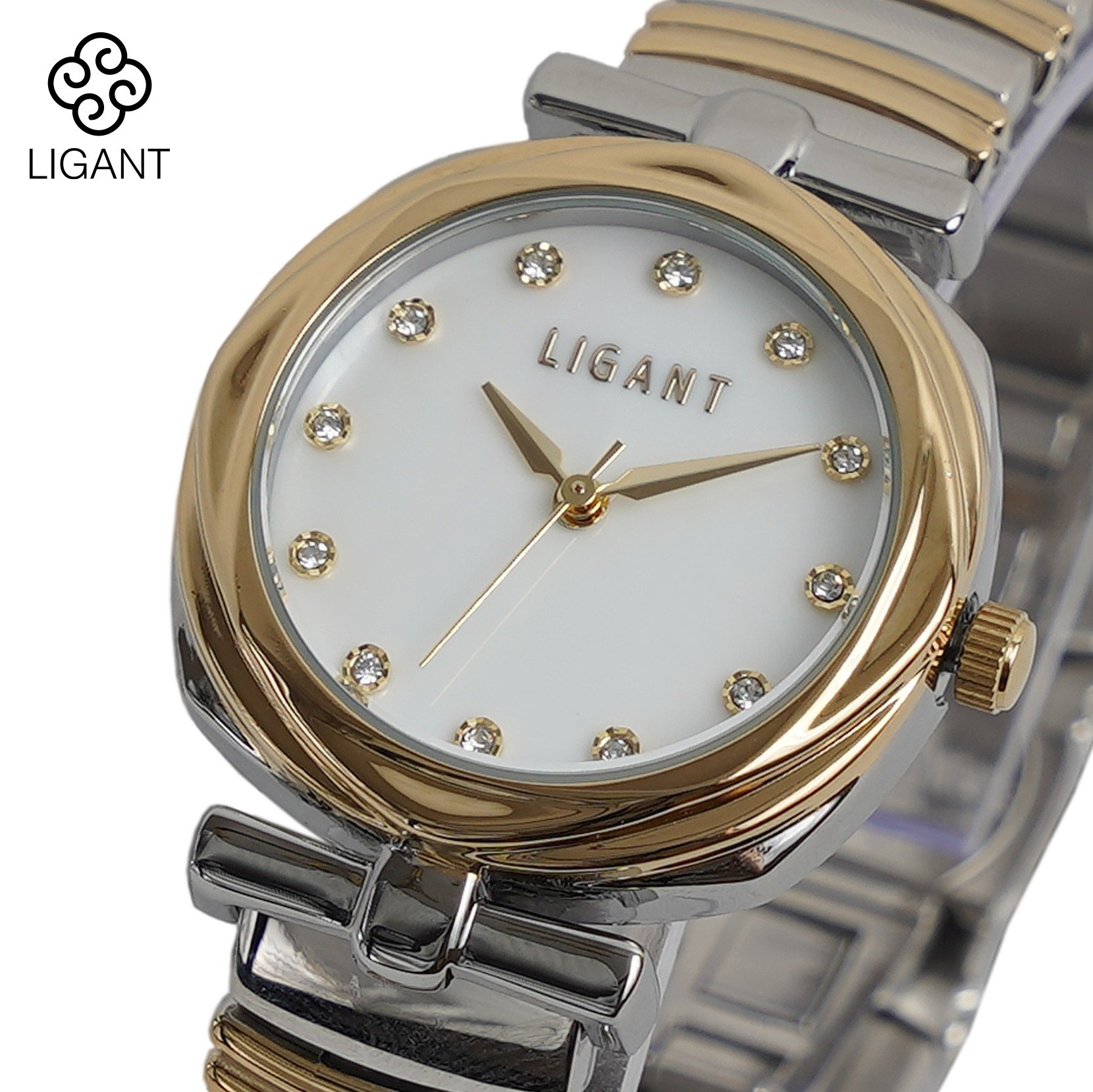 ساعة نسائية من ماركة ليقنت بسير من الستانلس ستيل باللون الأبيض، ساعة ليقنت بتصميم يجمع بين الأناقة والتميز، تتميز ساعة ليقنت بالميناء المميز باللون الذهبي و الفضي و بعدد من فصوص الزركون، و بلاشك ستكون هذه الساعة هي القطعة المناسب ارتدائها في كل الأوقات .
