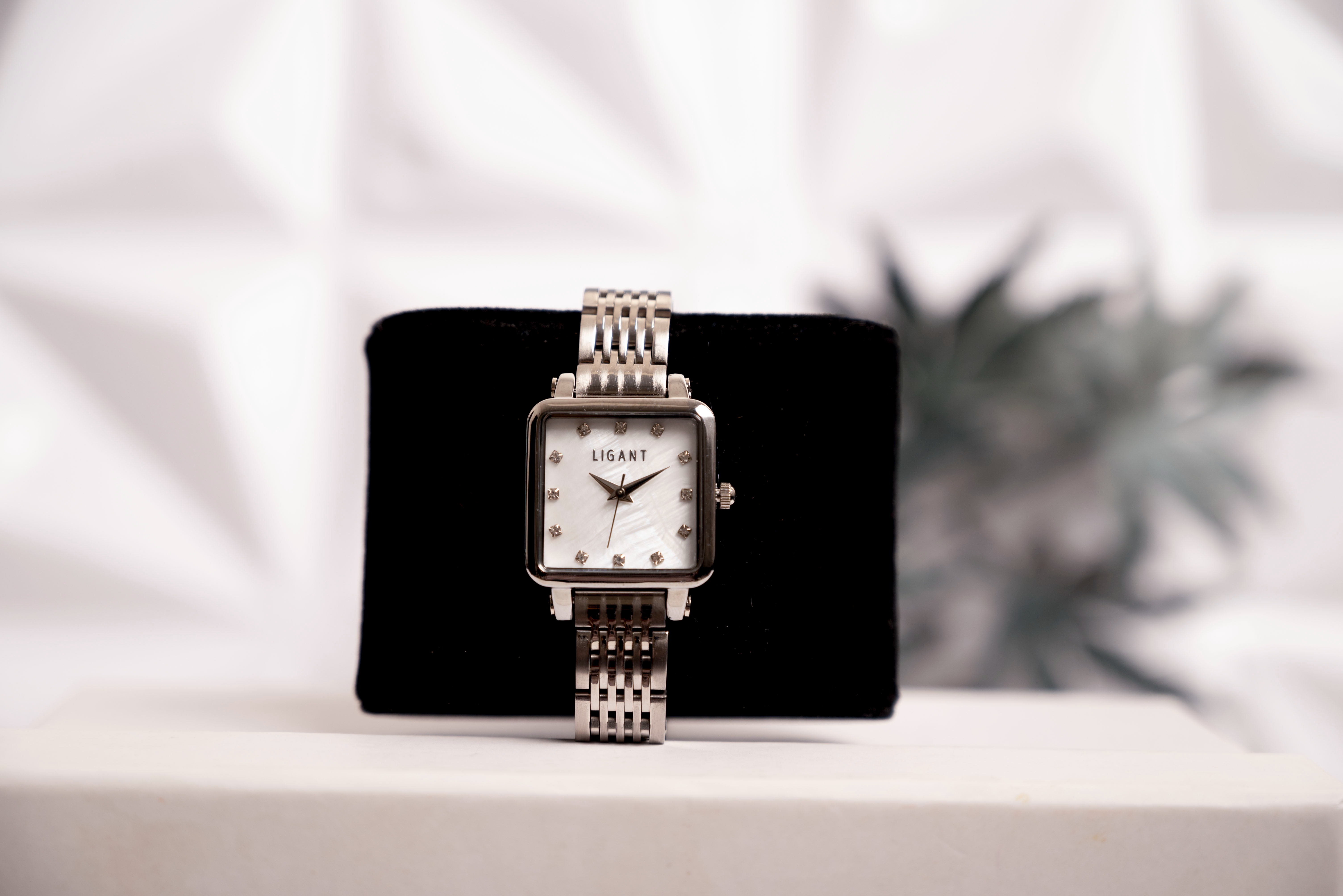 جددي إطلالتك بساعة نسائية من ماركة ليقنت، ساعة تتميز بلمسة من الأناقة العصرية، صممت الساعة بشكل عصري يناسبك في مختلف الأوقات، ساعة بسوار من الستانلس ستيل باللون الفضي، تتميز الساعة بميناء على شكل مربع باللون الأبيض وبفصوص زركون اللامعة لتعطيكي القوقة والبريق الذي تحتاجيه في جميع المناسابات.